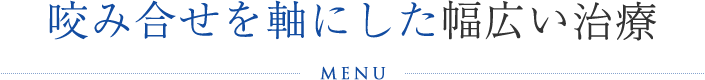 咬み合せは全歯科治療の根幹です。咬み合せが正常に整っていないと、虫歯は再発、詰め物等は破損または虫歯になり、インプラント体・入れ歯は脱落、痛み、顎関節症の発症の原因に繋がってしまいます。