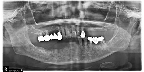 歯は残っているが上下で咬んでいる歯はない、これをすれ違い咬合と言います。すれ違い咬合には上の奥歯と下の前歯だけが残っている前後的すれ違い咬合と、上下の歯が左右で逆方向に残っている左右的すれ違い咬合があります。